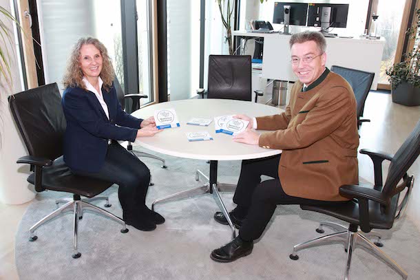Foto: Rosenheimer Landrat und CAT-Vorsitzender Otto Lederer (rechts) mit CAT-Geschäftsführerin Christina Pfaffinger (links) bei der Auswahl der Siegel.