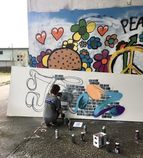 Ein Dank geht an die 30 Jugendlichen, die sich in den im Herbst 2021 angebotenen Workshops des Jugendtreffs „Logo“ in Rosenheim, des Jugendtreffs Bruckmühl und des Jugendzentrums „Innsekt“ in Wasserburg beteiligt hatten. Die Jugendlichen hatten aus ihren eigenen Ideen Graffitis entworfen und diese mit Spraydosen auf die Leinwand gebracht. Die Fotos der ausgewählten Entwürfe wurden nun professionell auf Folien gedruckt und am Bus angebracht.