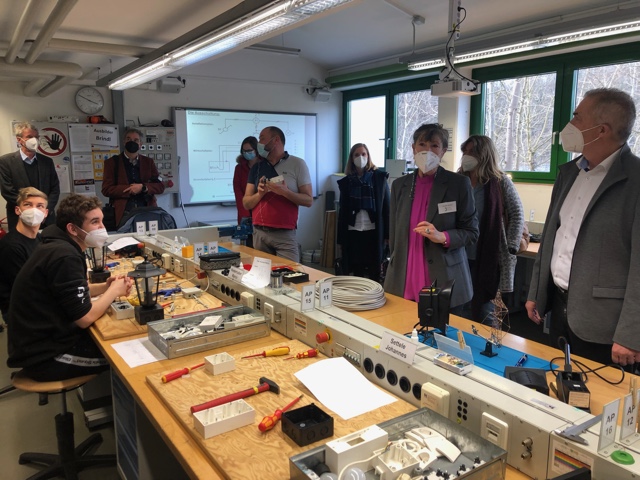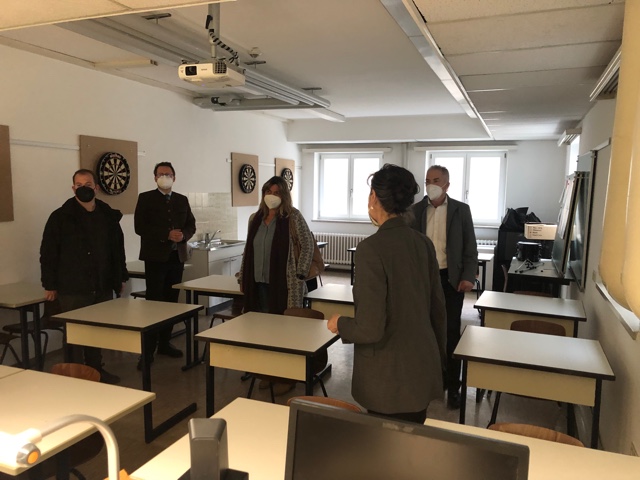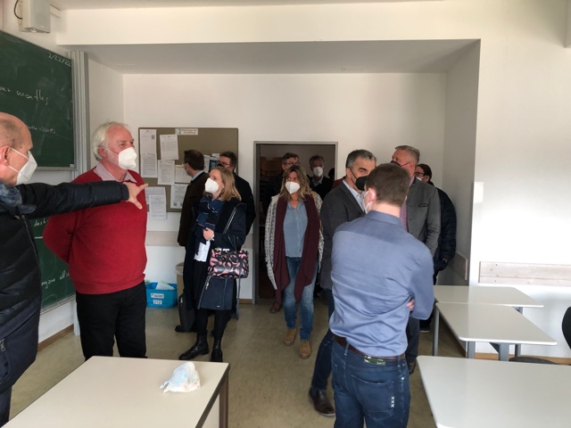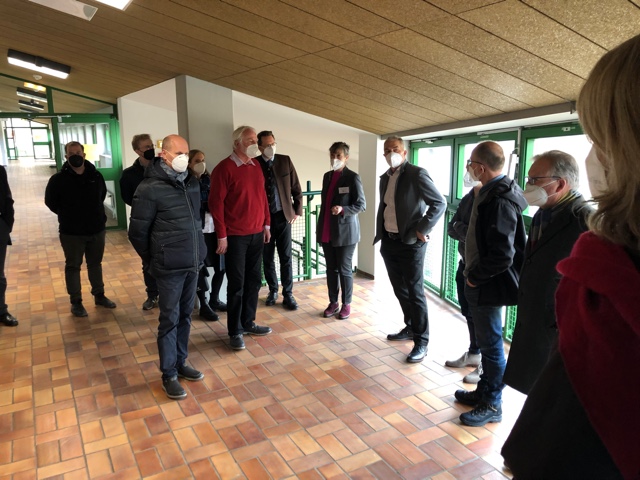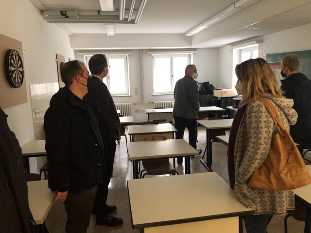Die Leiterin der FOS/BOS Wasserburg, Claudia Romer, erläuterte in einem anschließenden Rundgang durch die Räumlichkeiten die Nöte der Schule: Man habe 18 Klassenräume, benötige aber 26. Und die Ausdehnung der Schule umfasse 3.000 Quadratmeter, man benötige aber 5.000. Der Leiter der Bauabteilung im Landratsamt Rosenheim, Gerhard Kippes, präzisierte dann das Vorhaben. Man wolle die sogenannte Moserhalle abreißen und auf diesem Terrain ein Gebäude errichten, das den Raumbedarf zu decken vermag.
