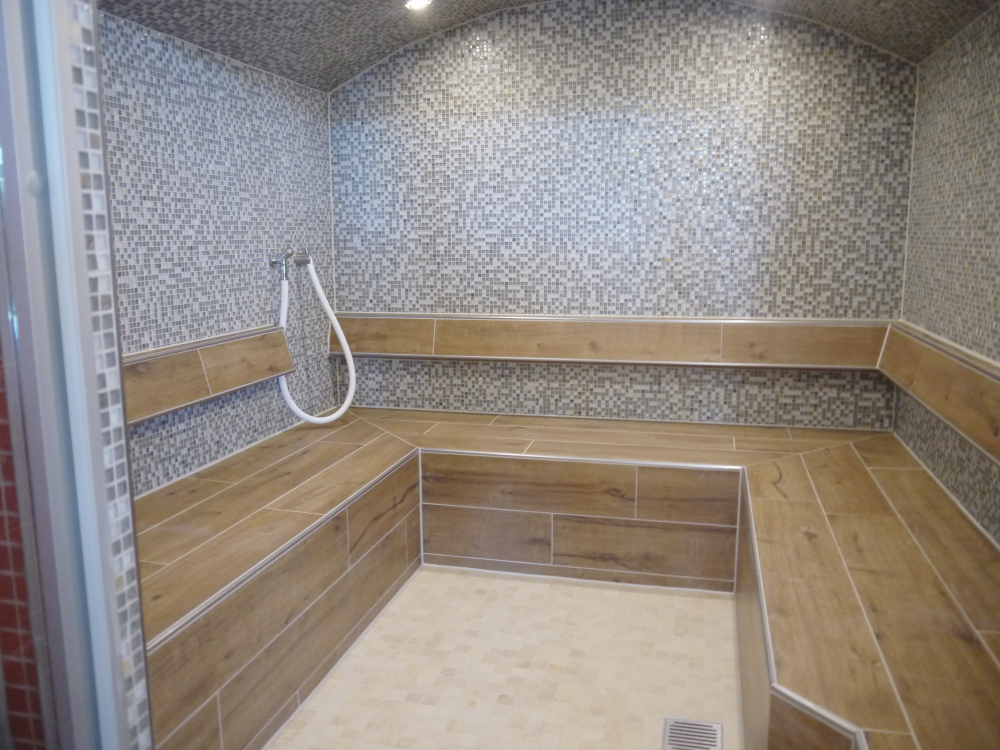 Nach Umkleiden mit orangefarbenen bis sonnengelben Spinten geht es durch weinrote Türen in der Schwimmhalle. Und drinnen gibt es noch als besonderes Schmankerl vom Gemeinderat ein Dampfbad. Farblich abgestimmt, hell und freundlich sieht das Hallenbad jetzt aus.