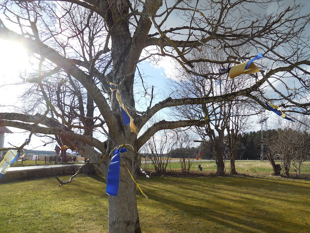 Für den morgigen Sonntag ist um 18 Uhr im Klostergarten ein Friedensgebet geplant. Wer mag, darf eine Kerze und/oder blau-gelbe Bänder mitbringen.