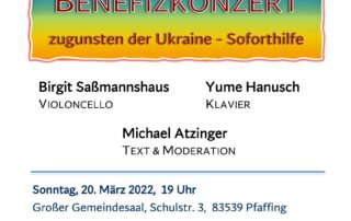 Eine Konzertlesung zugunsten der Ukraine-Nothilfe: Mit Yume Hanusch, Birgit Saßmannshaus sowie Michael Atzinger