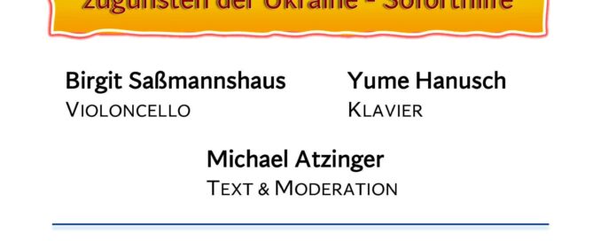Am Sonntag eine Konzertlesung für die Ukraine-Nothilfe: Mit Yume Hanusch, Birgit Saßmannshaus sowie Michael Atzinger
