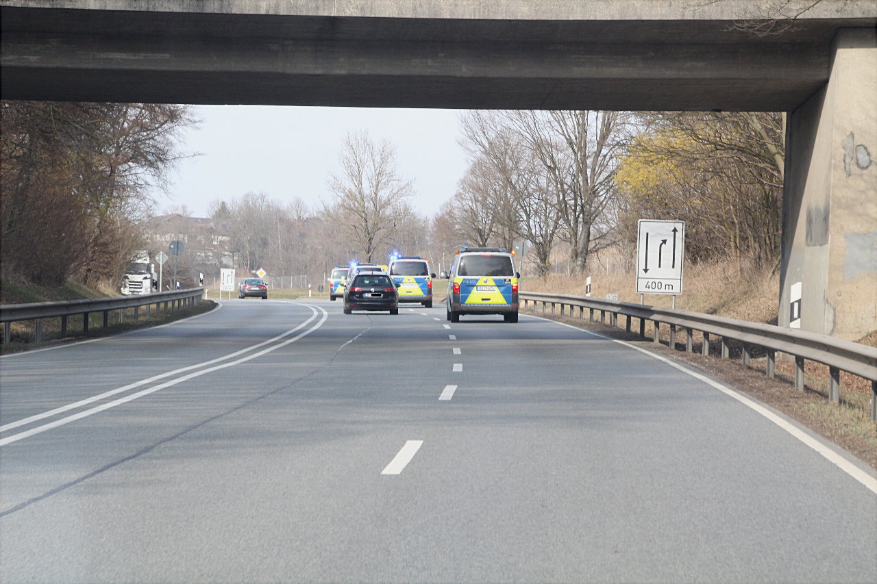 Auch an der Unfallstelle auf der B15 (wir berichteten) schlängelte sich der Polizei-Konvoi vorbei.
