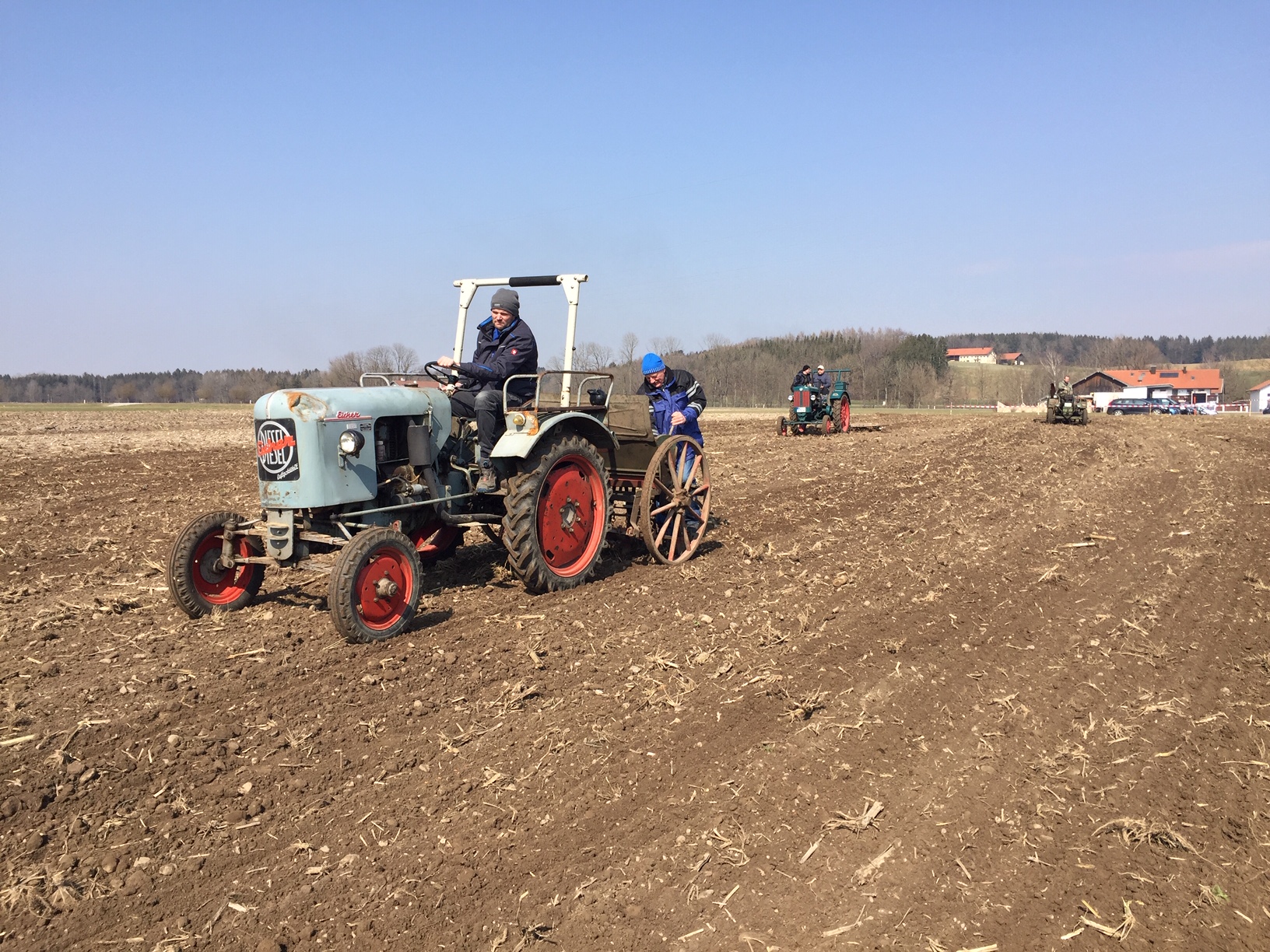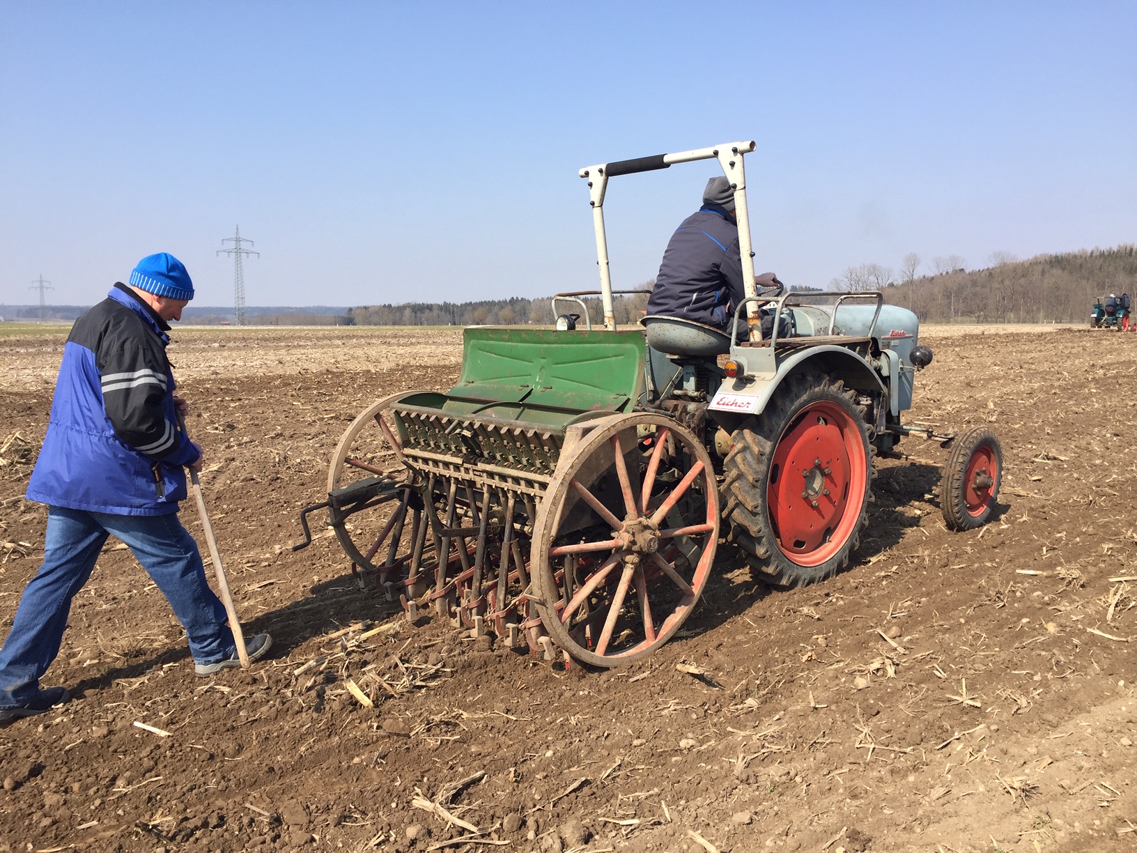 In Furth trafen sich heute zur Aussaat Oldtimer-Liebhaber mit ihren Gefährten und altehrwürdigen Landmaschinen beim Bareuther-Hof. Und natürlich fanden sich auch nicht wenig Schaulustige ein. Vormittags hatte es schon ein zünftiges Weißwurstessen gegeben.