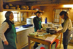 Neben dem gewohnt guten Essen mit Kaffee und Kuchen durch das fleißige Team in der Küche (Foto unten), präsentierte dann Schriftführerin Barbara Böhm den Tätigkeitsbericht des letzten Jahres – sehr anschaulich mit vielen schönen Bildern.
