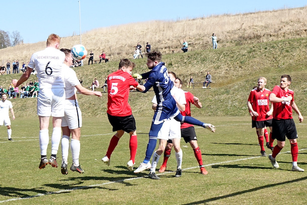 Es begann recht ansehnlich für die Hausherren, denn Andreas Wieser zielte aus 16 Meter knapp drüber (1.) und einen Kopfball von Matthias Rauscher wehrte TSV-Keeper Leon Westner spektakulär ab (8.).