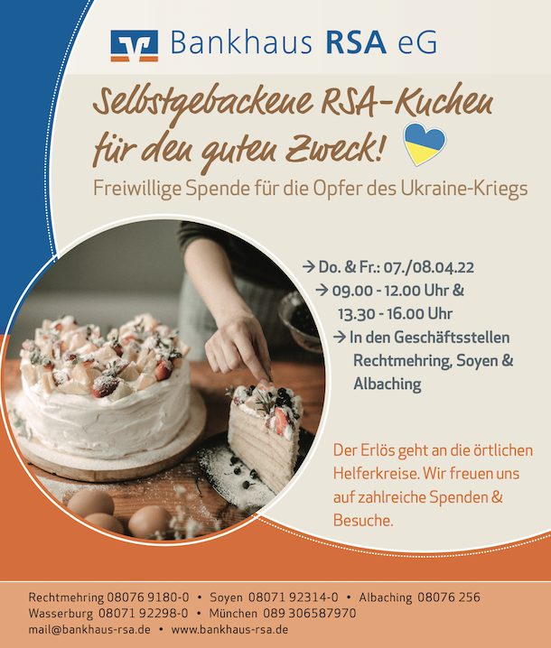 Die Kuchen werden gegen eine freiwillige Spende ausgegeben. Der Erlös geht in voller Höhe zu Gunsten der örtlichen Ukraine-Hilfe.