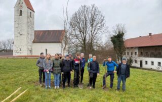 Eiselfinger Firmgruppen pflanzen 19 Bäume auf einer neuen Ausgleichsfläche neben der Kirche in Aham