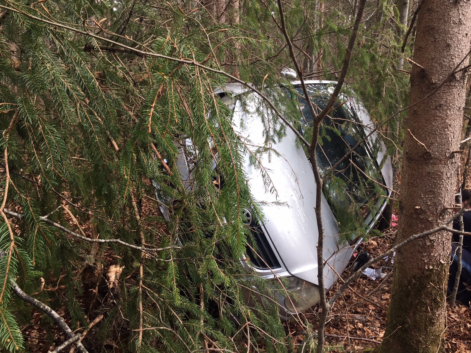 Alarm für die Feuerwehr Albaching: Am Karfreitag müssen die Floriansjünger auf die Kreisstraße Mü46 ausrücken. Zwischen Albaching und der B12 hat sich ein Unfall ereignet. Ein Pkw ist von der Straße abgekommen und im Wald gelandet. Ersten Meldungen vom Unfallort nach, zogen sich die Fahrzeuginsassen keine schweren Blessuren zu. Auch die Polizei war im Einsatz. Fotos: Georg Barth