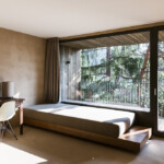 Straßenseitig ist der kubische Holzbau des Eco-Resorts kaum einsehbar. Wer sich aber über den versteckten Südeingang nähert, pirscht sich durch einen schmalen Waldpfad an, bevor sich das Hotel in voller Größe erhebt und eine erste Idee des verstecken Luxus im Inneren suggeriert: