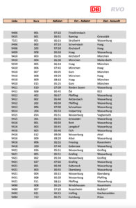 Der RVO meldet heute auf seiner Internet-Seite: „Am 27. April kommt es im Verkehrsgebiet der RVO in den Landkreisen Rosenheim, Mühldorf und auch bei zwei Linien im Landkreis Traunstein zu Fahrtausfällen im morgendlichen Schüler- und Berufsverkehr von Betriebsbeginn bis zirka 9 Uhr.“