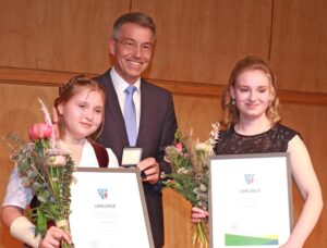 Christoph Maier-Gehring hatte die beiden Familien der Preisträgerinnen im Vorfeld besucht. Er konnte berichten, dass Aurelia Noichl schon im Kindergarten viel sang, Flöte spielte und Orff-Instrumente zum Klingen brachte. Außerdem war sie mit ihrer Mutter im Mutter-Kind-Chor und später im Kinderchor. Zur Harfe kam sie zufällig, weil eine zuhause stand. Erst seit vier Jahren spielt sie dieses Instrument und sie hatte das Glück, als eine von drei Privatschülerinnen von Professor Margit-Anna Süß aufgenommen zu werden. Die Harfen-Koryphäe wohnt in Sachrang und hat eine Professur an der Musikhochschule in Graz inne.