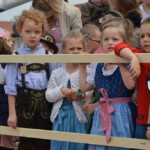 Nach einer Stunde war der Baum schließlich in seiner endgültigen senkrechten Stellung angelangt, was mit einem tosenden Applaus der vielen Besucher belohnt wurde. Der Baum zeigt sich schön geschmückt mit den Bildern der ortsansässigen Handwerker sowie den Wappen von Gemeinde und Vereinen.