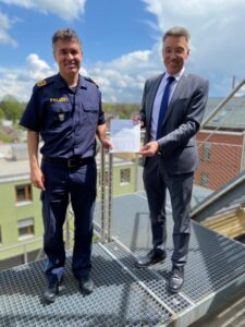 Polizeipräsident Manfred Hauser übergab heute Landrat Otto Lederer den Sicherheitsbericht 2021