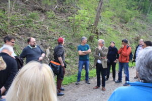 Der Umweltausschuss des Stadtrates traf sich gestern im Wuhrtal am Wuhrstauwerk zu einer Waldbegehung. Dies sollte einen mehrfachen Zweck erfüllen. So wurde den anwesenden Stadträten, aber auch der recht zahlreich erschienenen Öffentlichkeit unter anderem von Fritz Neuner (Foto) erklärt, warum die Stützmauern zur Salzburger Straße hin dringend erneuert werden müssten.