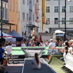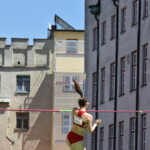 Beste äußere Bedingungen herrschen heute beim Altstadtspringen des TSV Wasserburg in der Herrengasse. Hunderte Besucher fanden sich schon vormittags und zur Mittagszeit ein, als der Stabhochsprung-Nachwuchs sein Können zeigte.