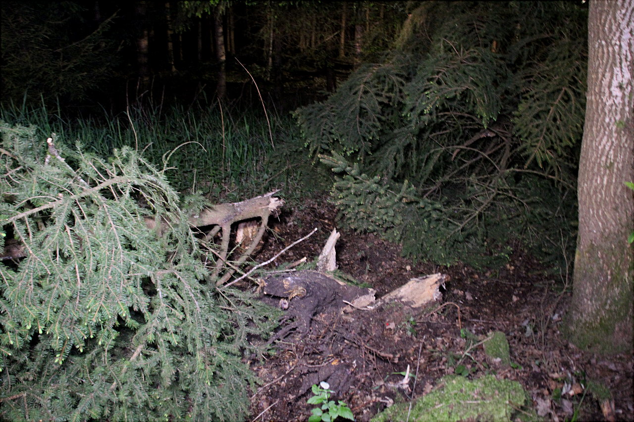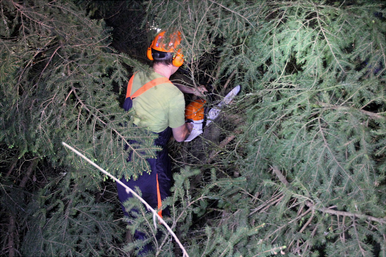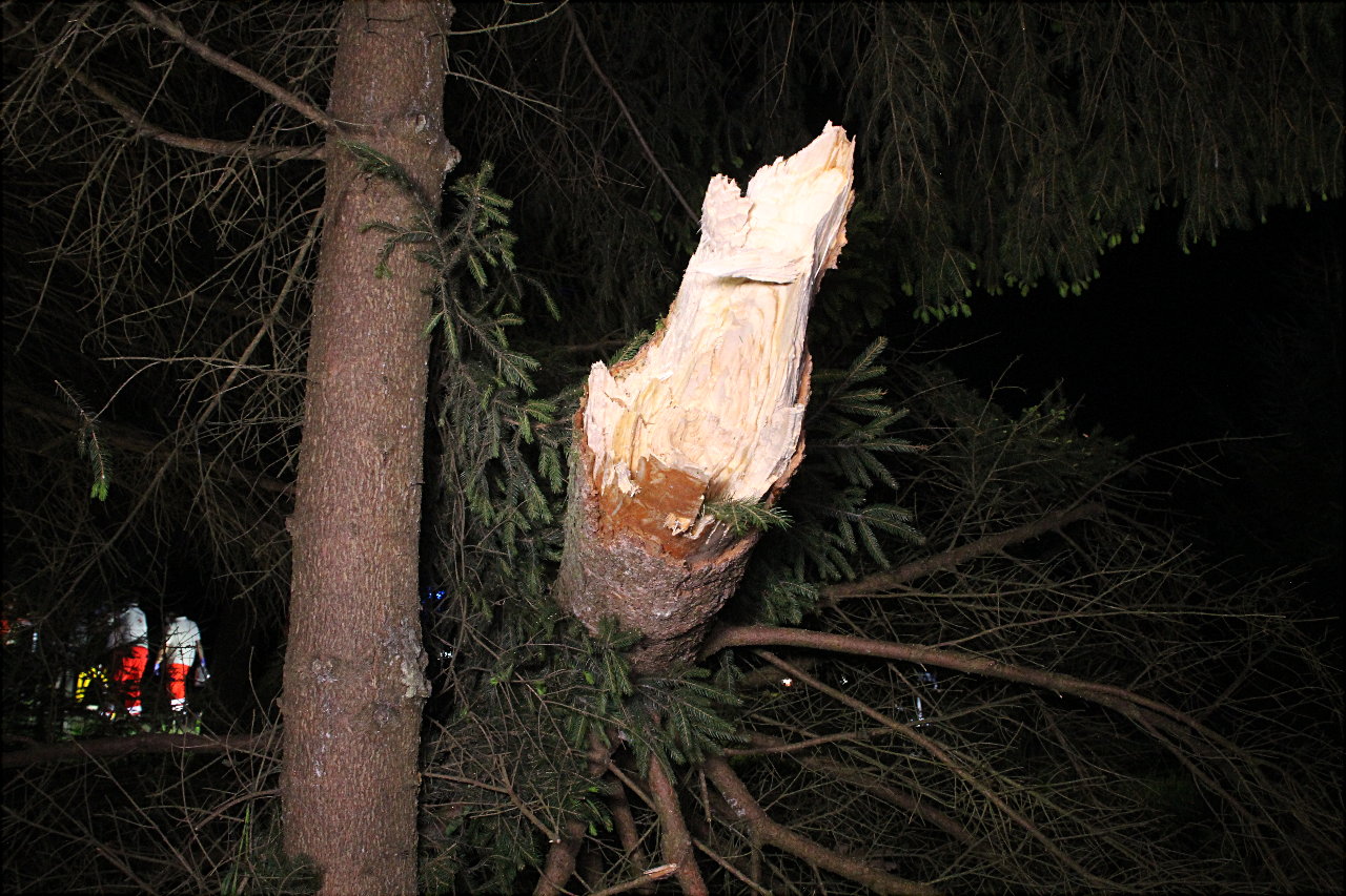 Die Feuerwehr aus Ramerberg entfernte die Tanne auf dem total beschädigten Pkw, so dass im Anschluss der Abschleppdienst den Pkw bergen konnte.