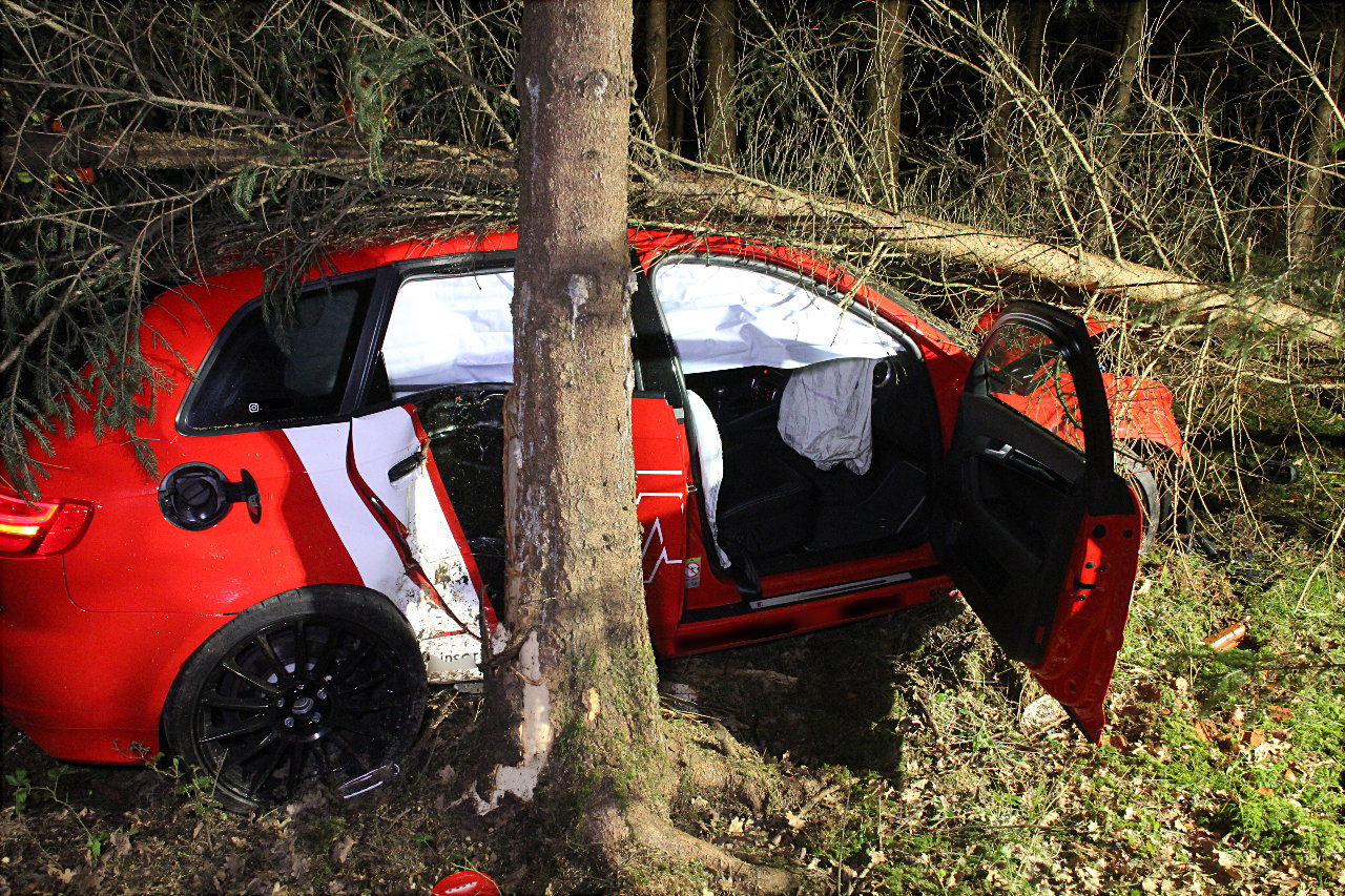 Am Samstagabend ereignete sich bei Ramerberg ein spektakulärer Unfall. Ein 21-Jähriger aus dem Altlandkreis war mit seinem Pkw, besetzt mit drei weiteren jungen Leuten, auf der Kreisstraße RO 34 von der B15 kommend in Richtung Ramerberg unterwegs. Unmittelbar nach Oberkatzbach – im Gemeindebereich von Ramerberg – verlor der junge Mann aus bislang unbekannter Ursache die Kontrolle über seinen Pkw und kam mit seinem Wagen von der Straße ab. Die unkontrollierte Fahrt ging weiter über eine Wiese in ein angrenzendes Waldstück und endete an einer mehrere Meter hohen Tanne.