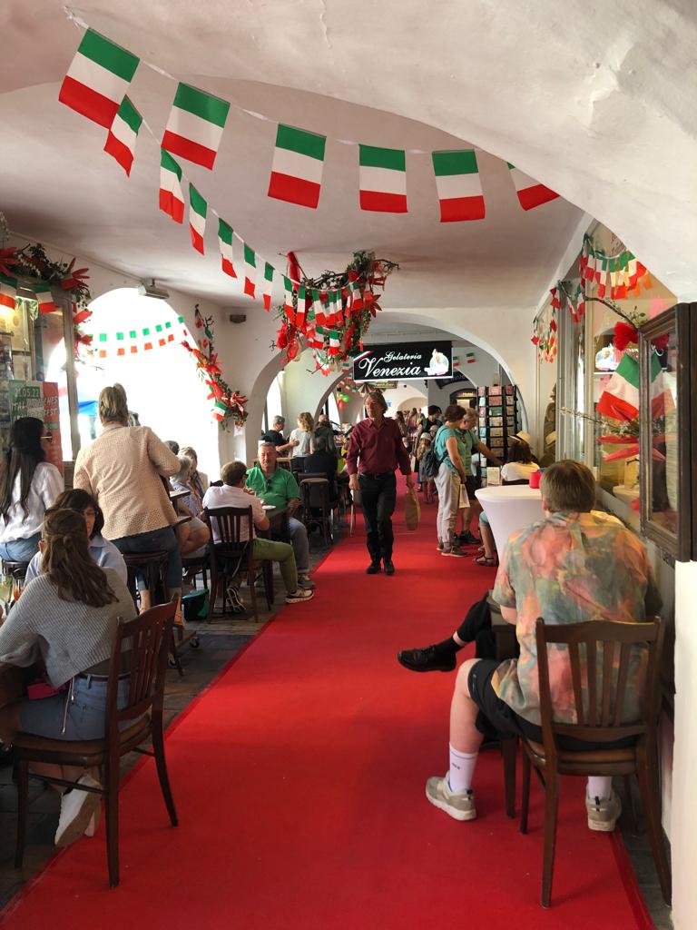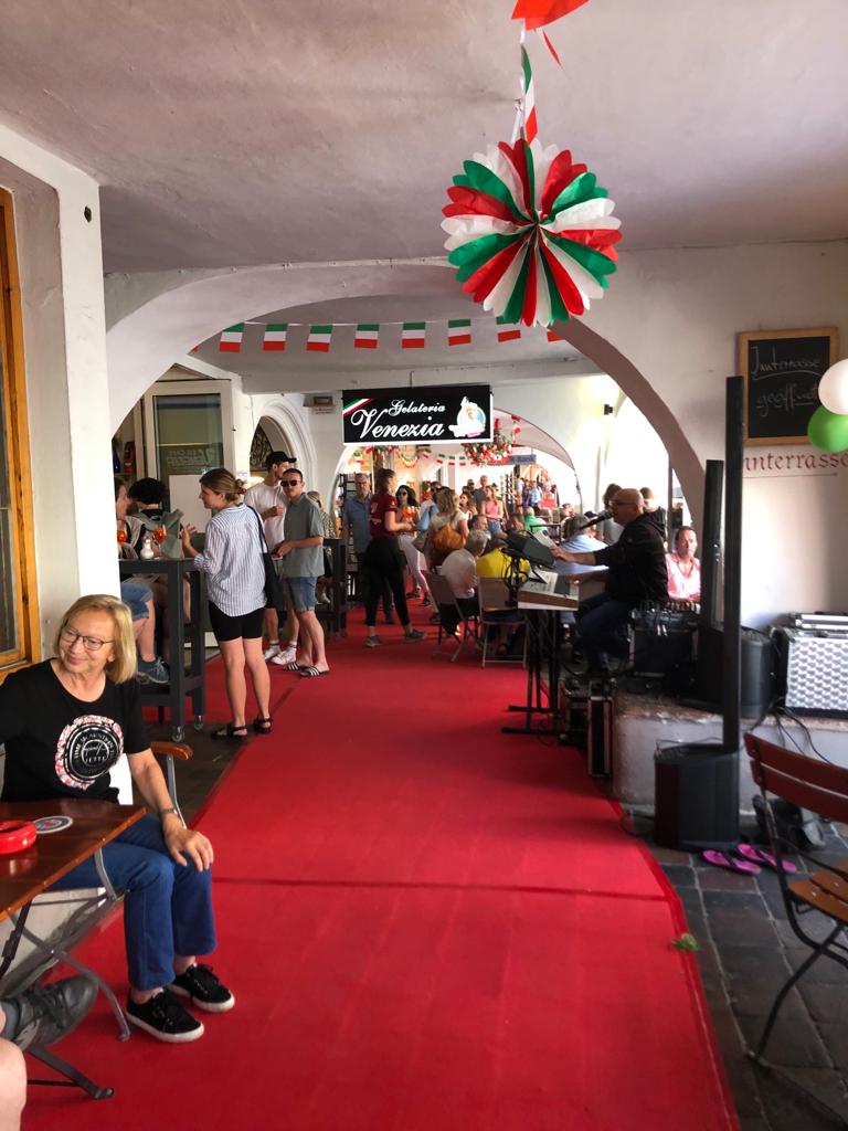 Ein voller Erfolg war auch heuer das Arkadenfest am Marienplatz. Annika Wierer und Anne Donath vom Organisationsteam freuten sich sichtlich. Ob beim Café Venezia, bei Schuhe bei Sax, bei Spiel- und Schreibwaren Pfeiffer am Rathaus, bei der Bohnenrösterei, bei Smaragd, bei Papier Teichler, bei der Parfümerie Wierer, bei Grünkunft, beim Paulaner oder beim Studienkreis – überall herrschte gestern reger Betrieb und beste Stimmung. Das Motto „Italien” kam natürlich Mimmo vom Venezia besonders entgegen, der seine Gäste musikalisch begrüßte.