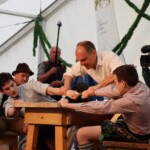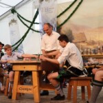 Für Festwirt Georg Lettl und Schirmherr Josef Huber gab es ein ganz besonderes Schmankerl zum Start der Bayrischen Meisterschaft: Sie eröffneten mit einem wertungsfreien Hakln, das letztlich Georg Lettl gegen den stellvertretenden Landrat gewann.