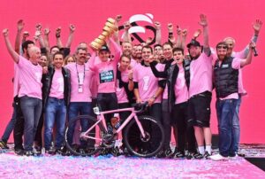 „Bora-hansgrohe“ drückte diesem „Giro d’Italia“ den Stempel auf wie noch nie eine deutsche Mannschaft zuvor. Sie holten sich zwei Etappensiege in den Bergen, wo sie unter anderem mit fünf Fahrern 80 Kilometer vor dem Ziel attackierten. Nur ein gutes Dutzend andere Fahrer konnten diesem Wirbelsturm folgen. Kapitän Hindley kam dadurch in Schlagdistanz zum rosa Trikot. Dieses trug bislang Richard Carapaz, Kapitän vom mächtigen Team „Ineos“. Eine Woche später schnappte Hindley dann diesem Mann das rosa Trikot weg. Das gelang ihm vor allem beim finalen Anstieg auf den gefürchteten Marmolada-Pass in 2.000 Meter Höhe, mit Unterstützung seines Helfers Lennard Kämna.