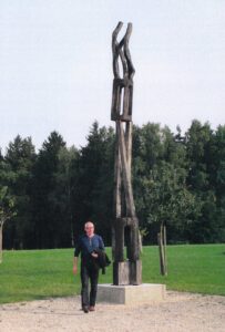 Hier wird das Werk ASKET von Johannes Gottwald stehen. Die Arbeit aus Eichenholz ist siebeneinhalb Meter hoch und steht auf einem Betonsockel.