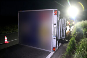 Samstagabend bei Staudham: Anhänger kippt um und blockiert Fahrbahn