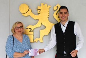 Der Gewinn wurde Anita Steidle von Martin Stadler, stellvertretender Leiter des Beratungszentrums, überreicht. Frau Steidle möchte mit dem Geld die private Urlaubskasse bezuschussen …