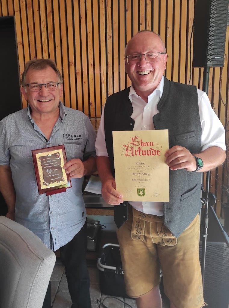 Der Vorsitzende der Kegelkreisrunde Ebersberg/Erding, Toni Fuchs, berichtete über die Erfolge und Spitzenleistungen der Edlinger Mannschaften und Einzelkegler und Keglerinnen in diesen 40 Jahren. Anschließend überreichte er Abteilungsleiter Beck eine Urkunde und eine Erinnerungstafel für diese 40 Jahre Kegelgeschichte.