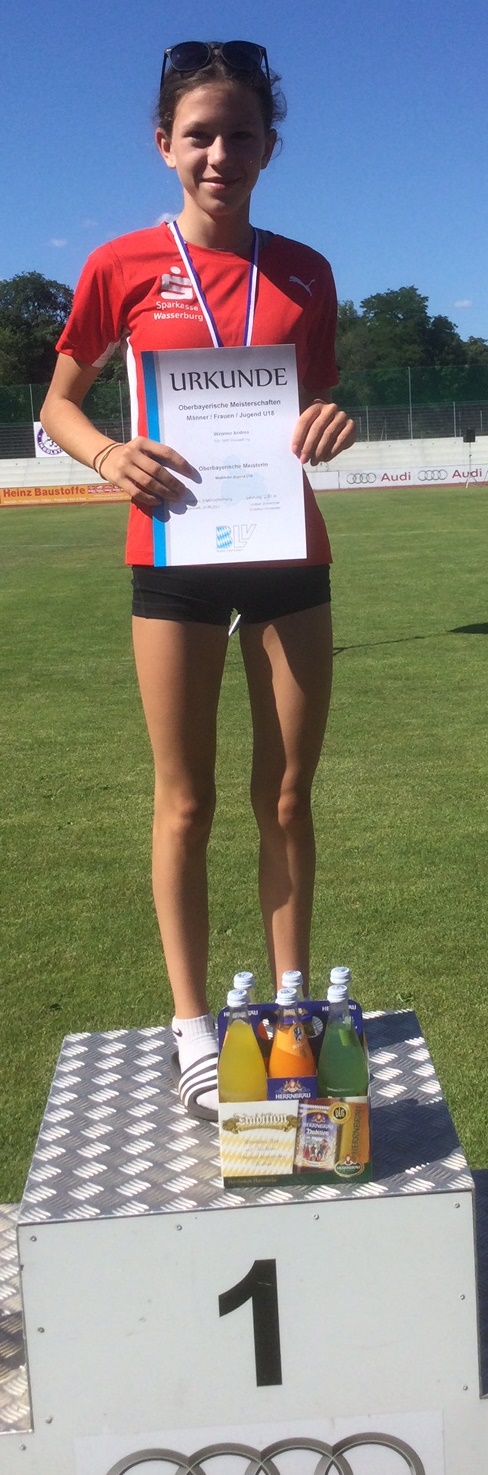 In dieser Altersklasse gab es eine Silber und eine Bronze Medaille durch Johanna Anglhuber und Sophia Obermayer. Johanna erreichte im Kugelstoßen eine neue persönliche Bestleistung mit 11,32 Metern und musste sich nur ihrer Dauerrivalin Chiara Wildner von der LG Sempt geschlagen geben. Sophia hatte eine Woche nach ihrem Titelgewinn bei den Süddeutschen Meisterschaften im Stabhochsprung dieses mal etwas Pech. Sie musste sich mit einem 3. Platz und übersprungenen 2,80 Metern begnügen.