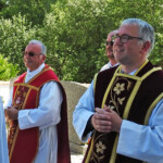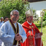 Dem Gotteshaus in Rettenbach zu Ehren gab es den Festgottesdienst neben der Kirche mit H.H. Erzabt Dr. Korbinian Birnbacher (unten Bildmitte). Mit dem Pfaffinger Pfarrer Josef Huber an der Seite sowie – zur großen Freude vieler Anwesenden – auch mit dem früheren Geistlichen der Kirchengemeinde, Pfarrer Willibald Mittermeier (rechts im Bild unten). Welch wunderbares Wiedersehen.
