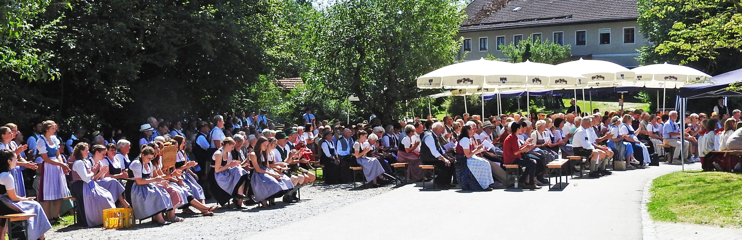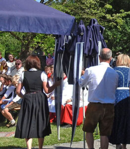 Die Kirchenverwaltung Rettenbach und der Pfarrgemeinderat der Pfarrei Pfaffing luden dann herzlichst ein, diesen Festsonntag – der in die Geschichte des Dorfes eingehen wird – auch weiterhin noch gemeinsam zu feiern. Das Pfarrfest der ganzen Pfarrei Pfaffing fand nämlich beim heimischen Kirmer im und am Stadel statt. Für die musikalische Unterhaltung sorgte die Pfaffinger Musi.
