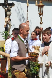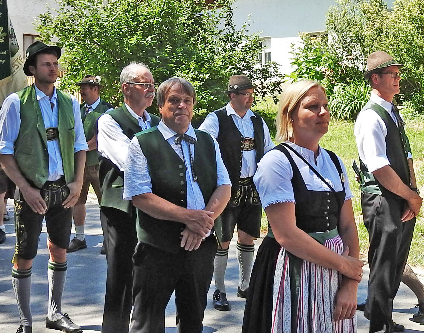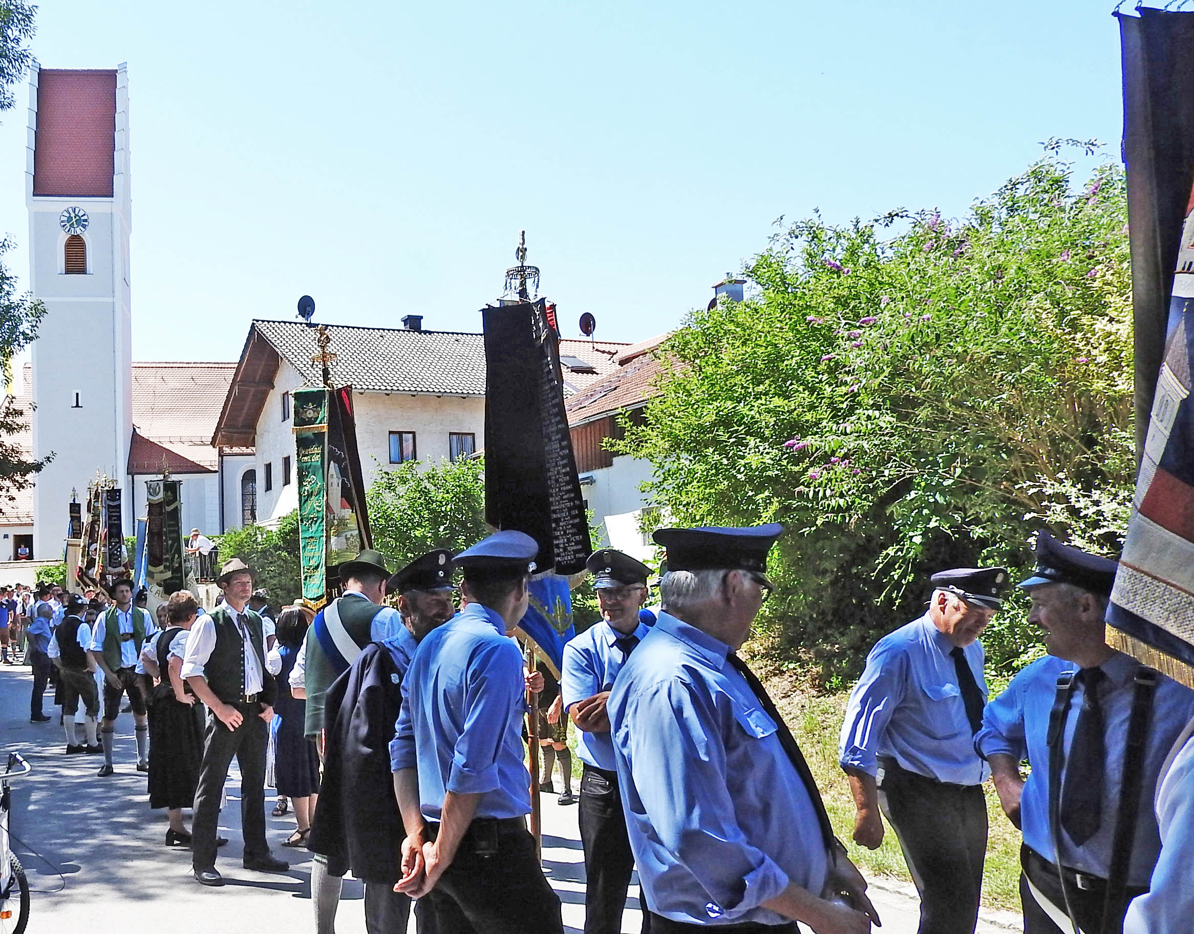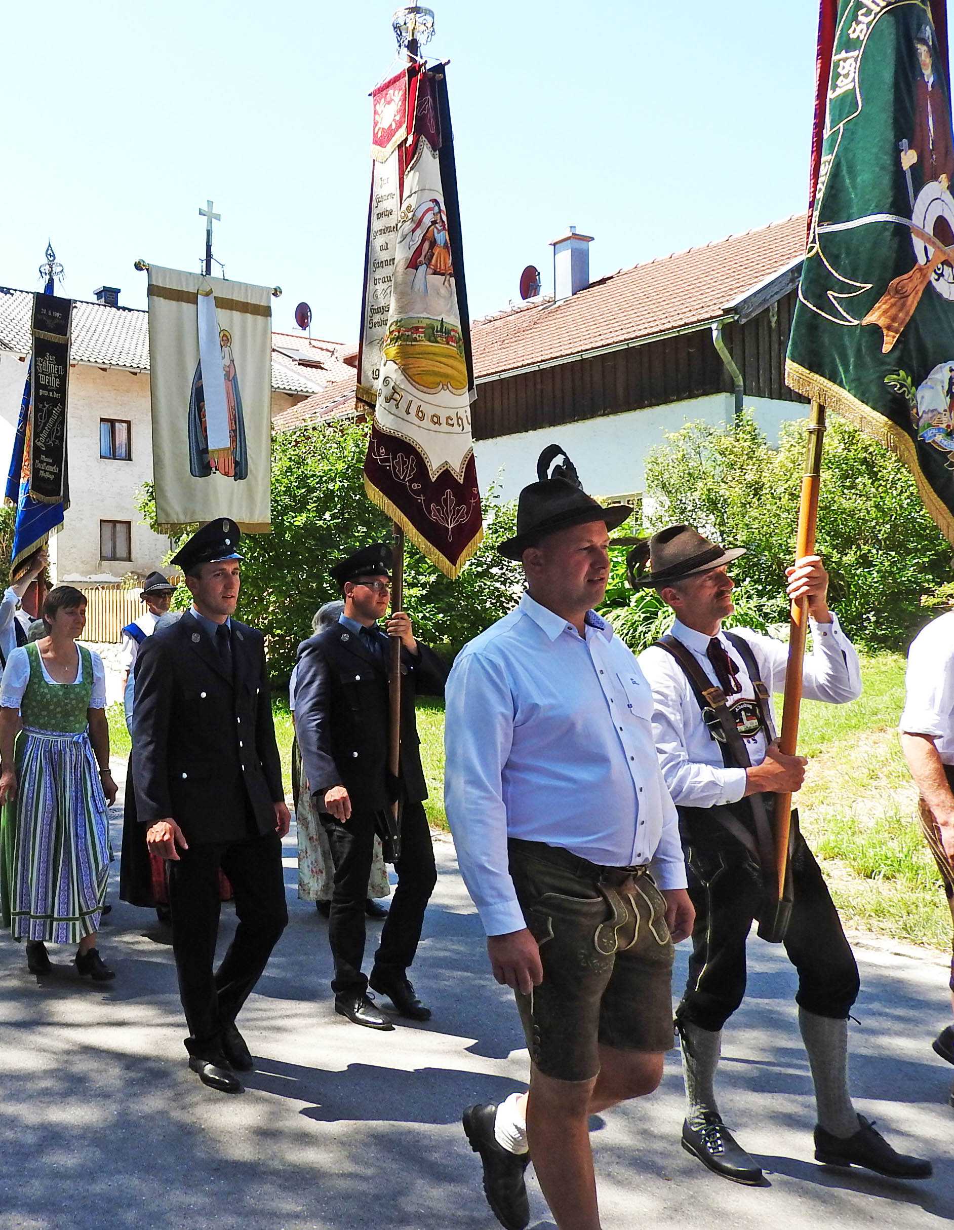 Anschließend folgte ein Festzug durchs Dorf. Angeführt von Stefan Reich als Kreuzträger – gefolgt von der Pfaffinger Musi.