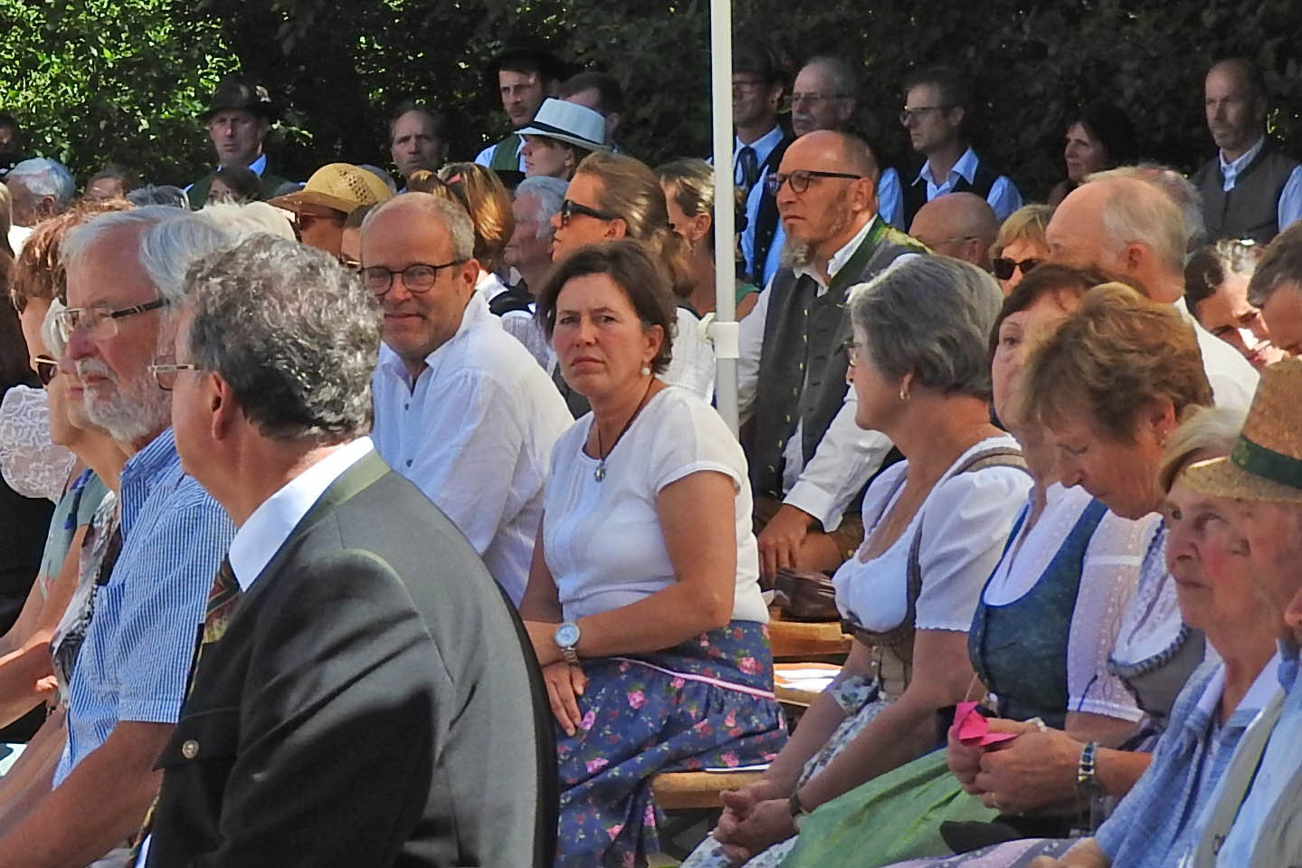 Die Pfaffinger Musi unter der Leitung von Bernhard Pauker spielte mit der Band und der Kirchenchor unter der Leitung von Monika Schelhorn sang dazu – ach ja, und nebenbei zwitscherten die Vögel in den nahen Bäumen auch noch zahlreich geradezu begleitend mit. In der Idylle des Ortes.