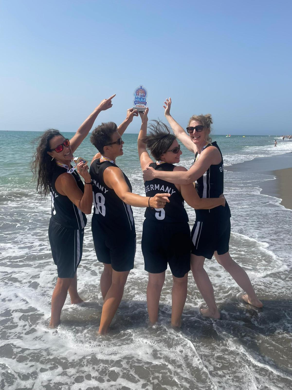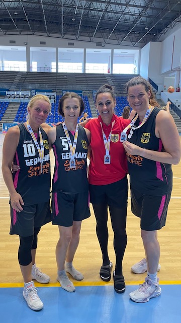 Im Finale der Fimba-Basketball-Europameisterschaft in Málaga (wir berichteten) holte sich das deutsche Ü45-Team gegen Polen die Silbermedaille und somit den Vizetitel. Nach einem furiosen 14:0-Lauf des deutschen Teams kamen die Polinnen immer besser ins Spiel, so dass es zur Halbzeit nur noch 27:19 für Deutschland stand. Leider ging das dritte Viertel mit 2:12 an das polnische Team und auf im letzten Spielabschnitt fanden die Bälle mehr auf der polnischen Seite in den Korb, so dass die Polinnen mit 48:40 Europameister wurden.