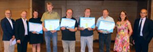 Von links im Bild Hubertus Bauland (Geschäftsführer), Christian Hain (Gesellschafter), Helga Edlbergmeier, Hubert Lewik, Klaus Konrad, Franz Fischer, Johann Köppelreiter, Barbara von Hagman (Gesellschafterin) sowie Robert Winkelmann (Geschäftsführer).