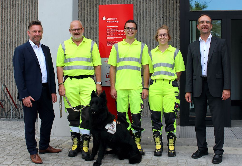 Die Sparkasse Wasserburg unterstützt den Verein bereits seit vielen Jahren bei ihrer wichtigen Aufgabe. Gerne überreichte Robert Minigshofer zusammen mit Markus Keller die Spende der Sparkasse Wasserburg. Kurt Schmalwieser, Leiter der Rettungshundestaffel, bedankte sich zusammen mit Manuel Reindl und Ellen Schlögl ganz herzlich für die Spende.