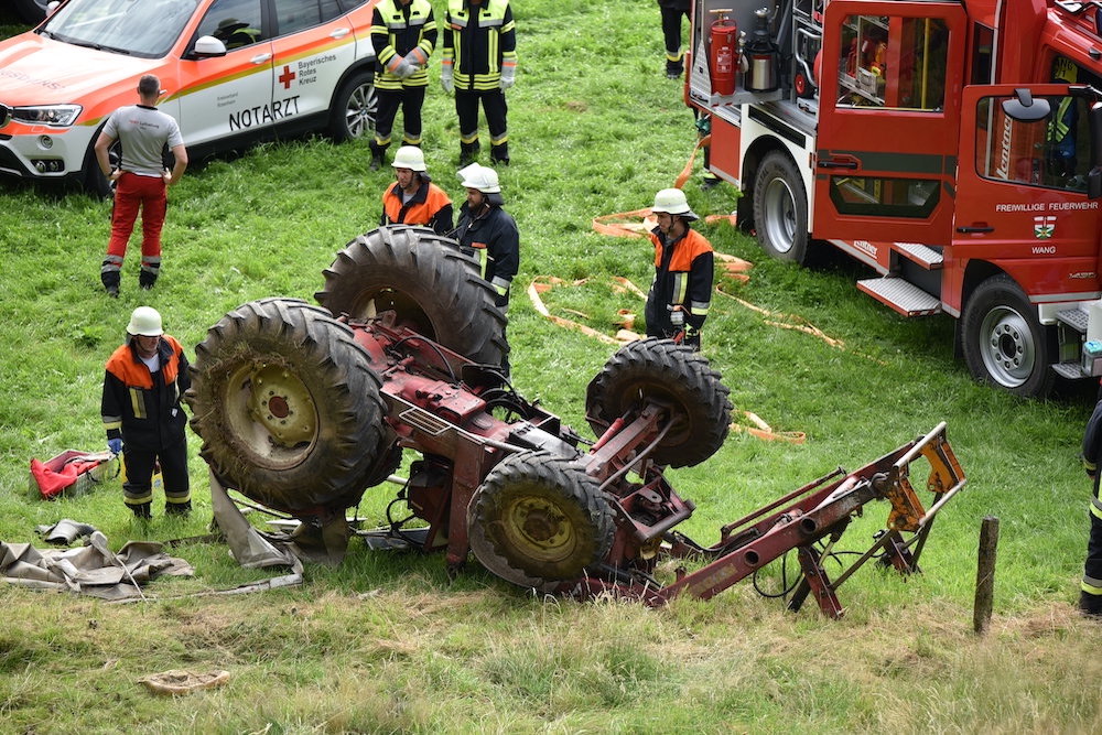 Er wurde mit einem Helikopter nach München in ein Krankenhaus verbracht. Die Feuerwehren Wang, Babensham, Schambach und Gars waren vor Ort. Am Traktor entstand ein wirtschaftlicher Totalschaden.