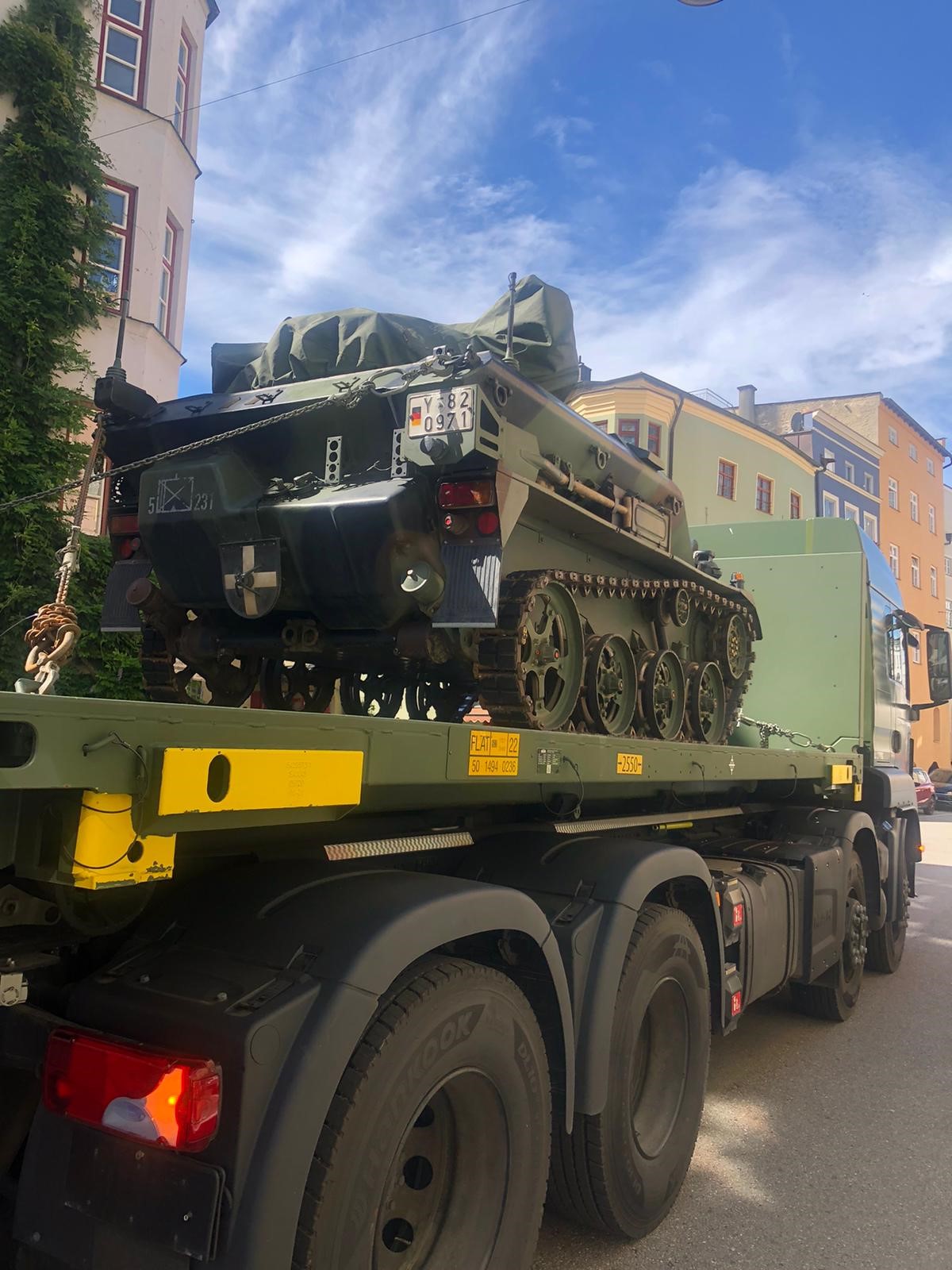 Was die geflüchteten Kinder wohl denken mögen, wenn sie hier in Wasserburg oder Umgebung in Sicherheit sind, dann durch Wasserburg gehen und einen Panzer sehen? Selbst mir schaudert es, obwohl ich diese Gefährte nur aus dem TV kenne und es noch keine Familienmitglieder ausgelöscht hat oder mein Haus zerstört hat.