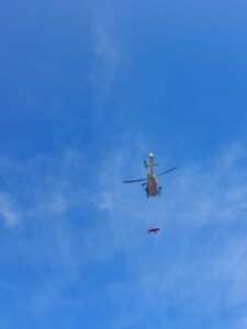 Zum schonenden Transport und zur weiteren notärztlichen Versorgung wurde erneut der Rettungshubschrauber Christoph 1 angefordert. Die Frau wurde liegend im Luftrettungsbergesack per Winde aufgenommen und direkt in die Klinik geflogen.