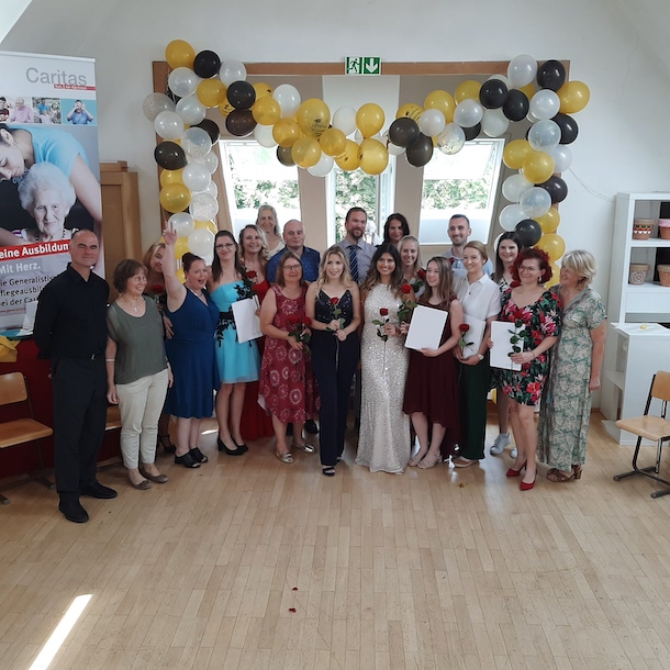 Höppner betonte die Bedeutung der beruflichen Bildung und Weiterbildung für den Caritasverband der Erzdiözese München und Freising. Sie wies auf das umfangreiche und attraktive Angebot der zahlreichen Caritaseinrichtungen im Bereich der ambulanten und stationären Pflege hin und zeigte den Absolventen die Möglichkeiten der beruflichen Fort- und Weiterbildung im Caritas Institut für Bildung und Entwicklung auf.