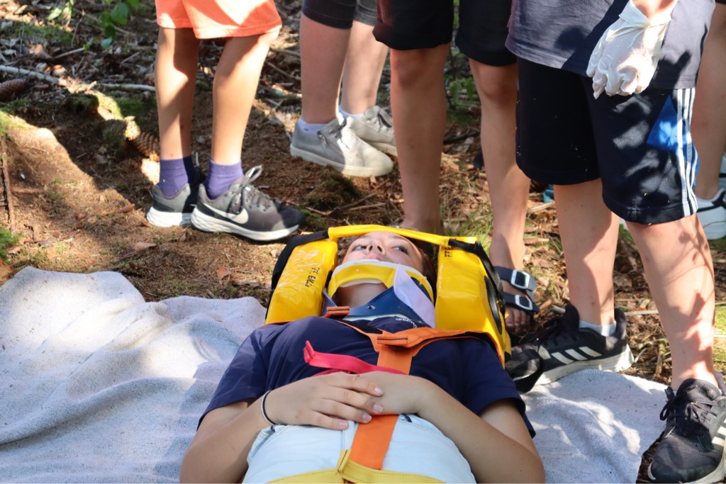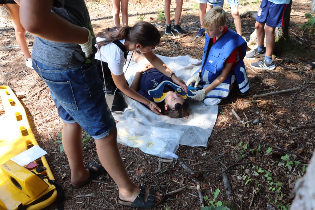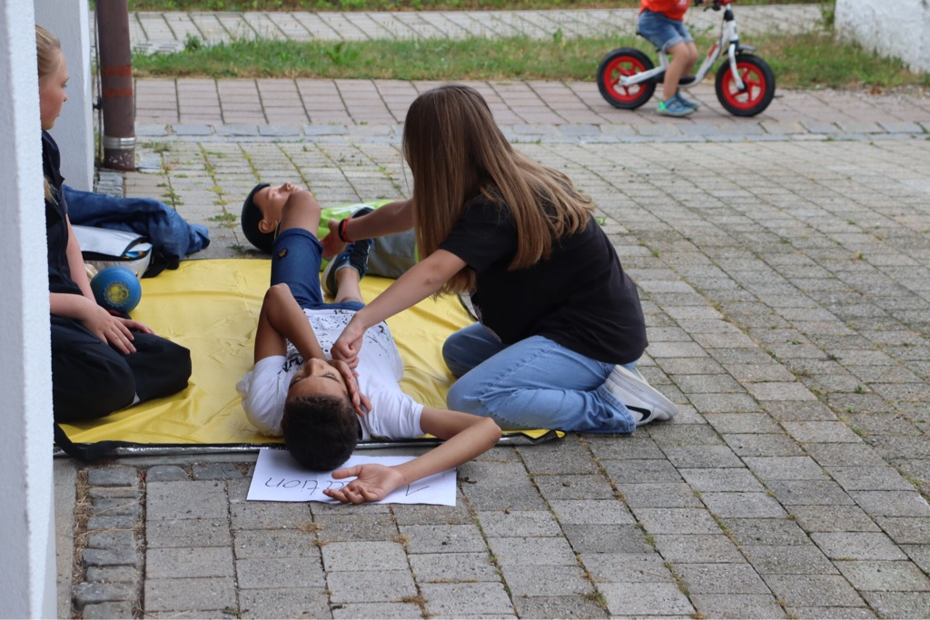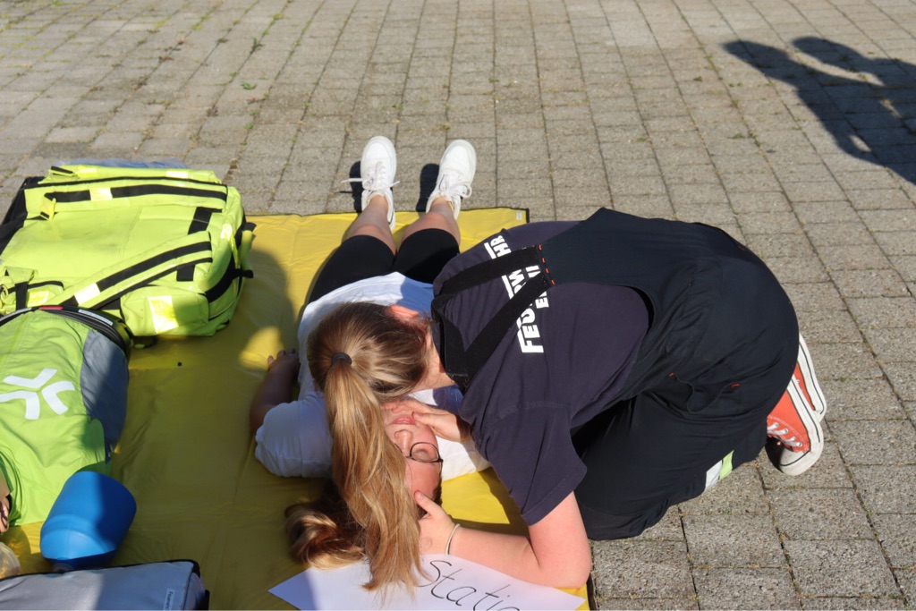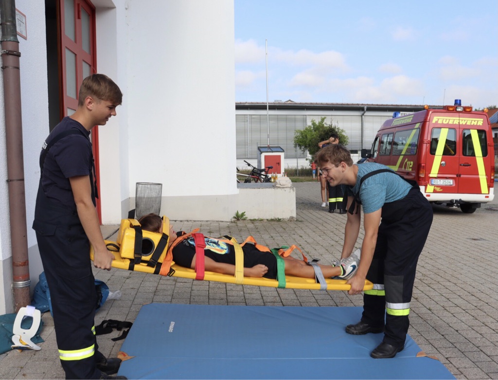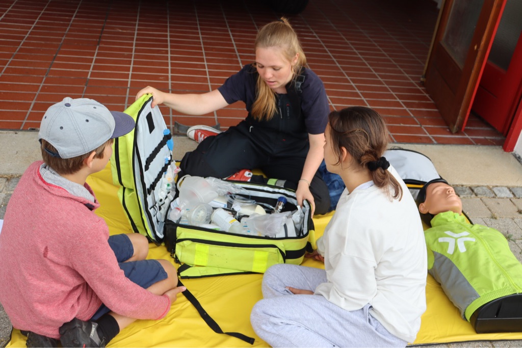 Die Schüler konnten zunächst in einem Stationentraining Grundkenntnisse erlernen und später in einer Einsatzübung ihr Wissen anwenden. Der Umgang mit dem Spineboard, das Erste-Hilfe-Vorgehen beim Auffinden einer verletzten Person, der Sprechfunk, aber auch der generelle Ablauf eines Einsatzes wurden mit den Schülern besprochen.