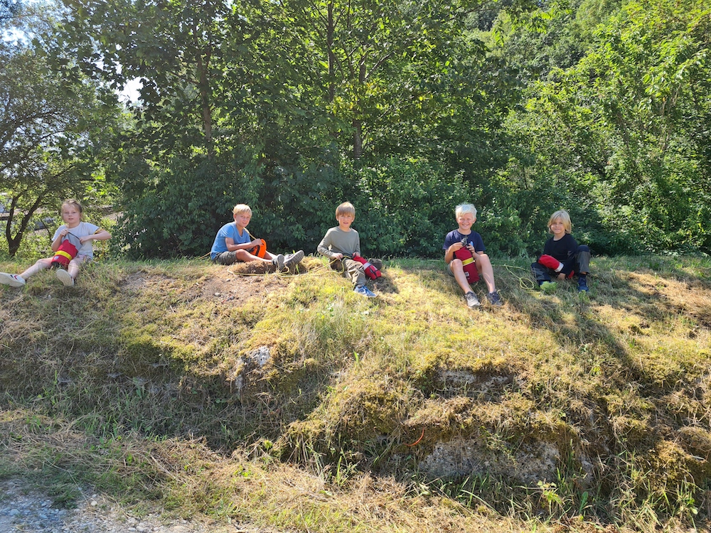 An der ersten Station wurde fleißig das Wurfsackwerfen geübt. Der Wurfsack ist ein wichtiges Rettungsmittel, mit dem Menschen beispielsweise aus Fließwasser gerettet werden können. Außerdem konnten die Kinder Grundlagen in der Knotenkunde erlernen. Dazu gehörte unter anderem der Achter-, der Kreuzknoten oder auch der Palstek.