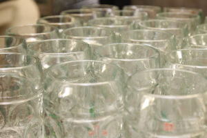 Jeweils ein frisch gereinigter Krug der Schänke ist das Testobjekt. „So sehen wir auch, ob die Maschine gründlich reinigt“, erklärt Helmut Faber.