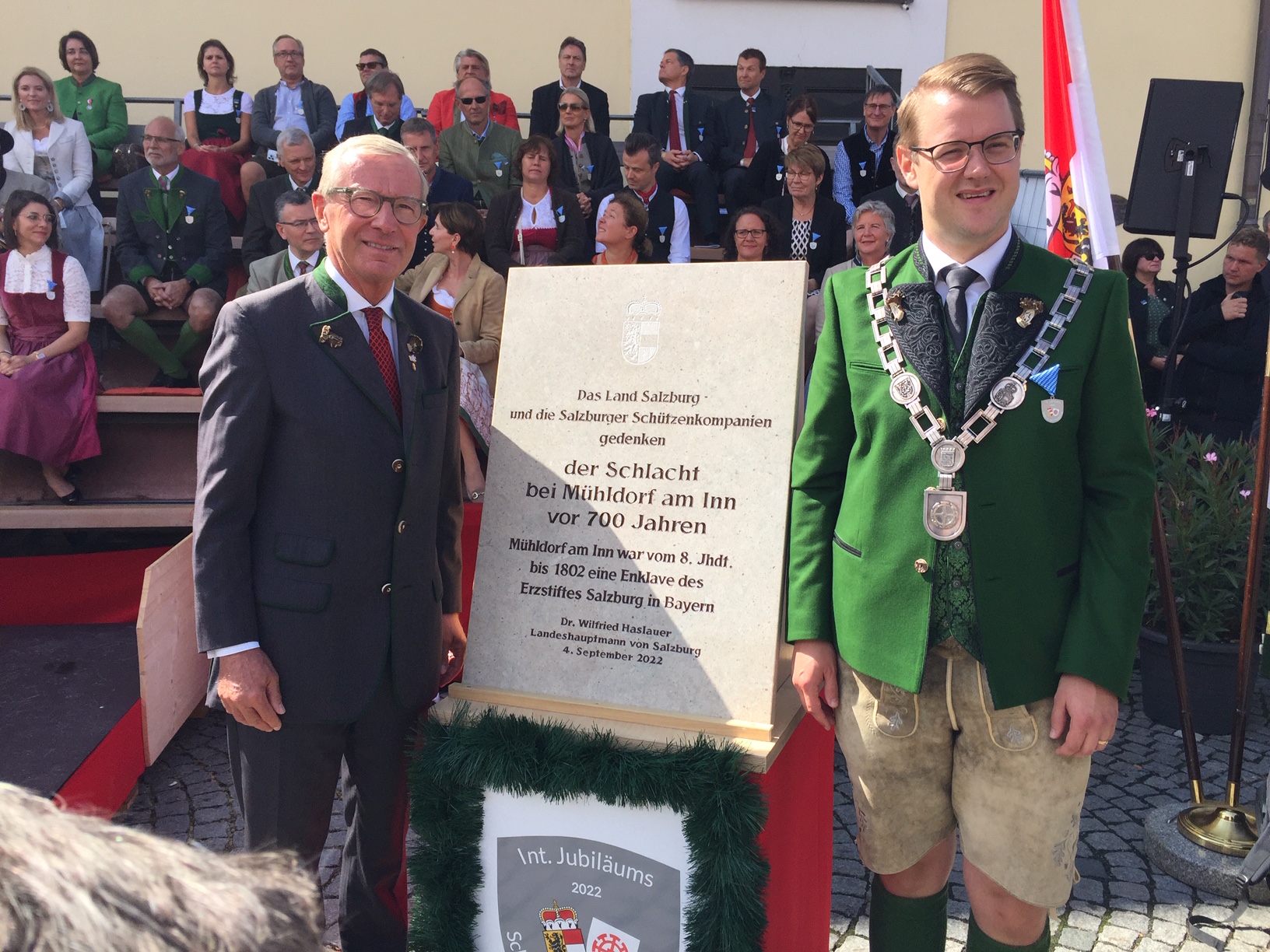 Auch eine Gedenktafel des Landes Salzburg wurde überreicht. Die Tafel wird künftig an der Frauenkirche in Mühldorf an die historische Schlacht erinnern.