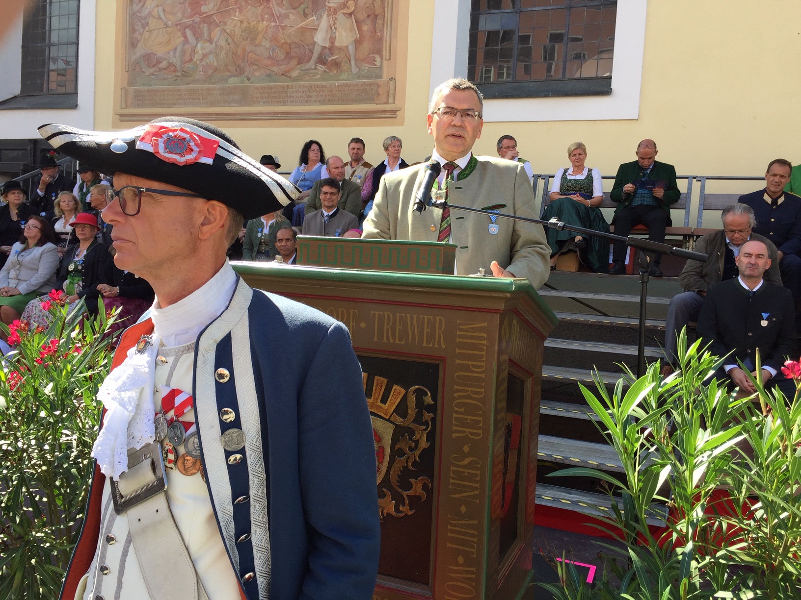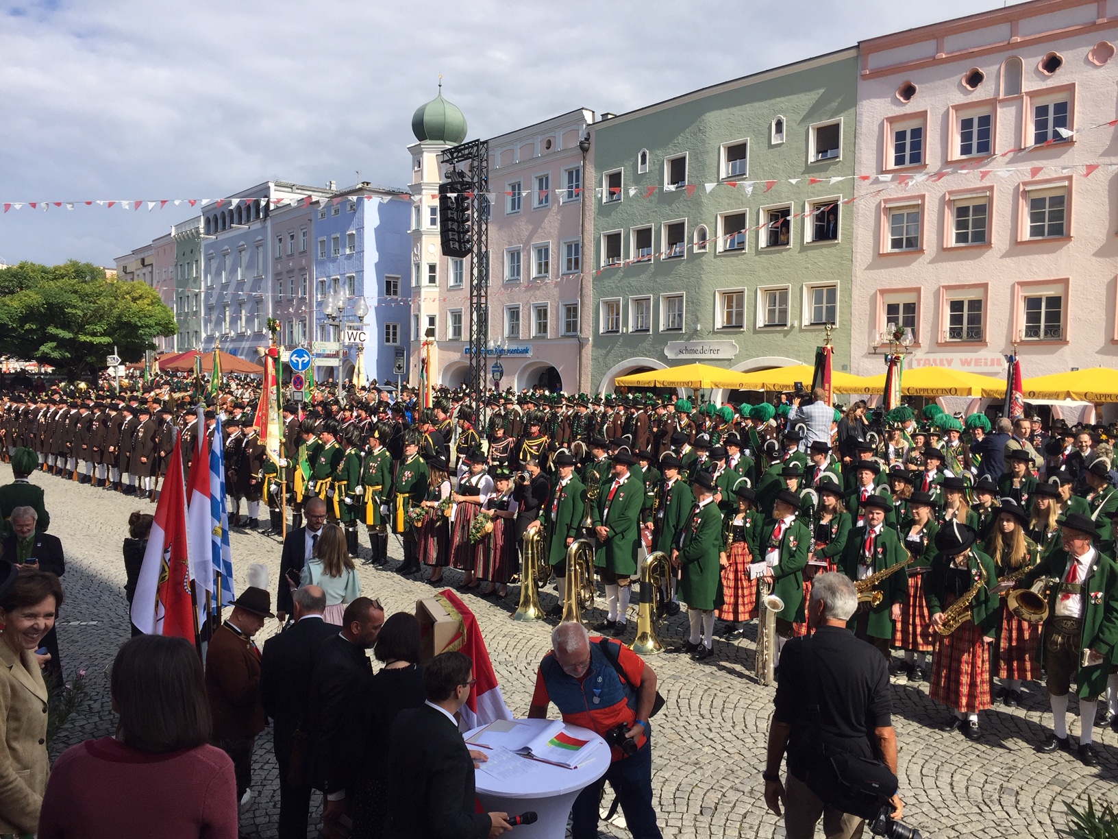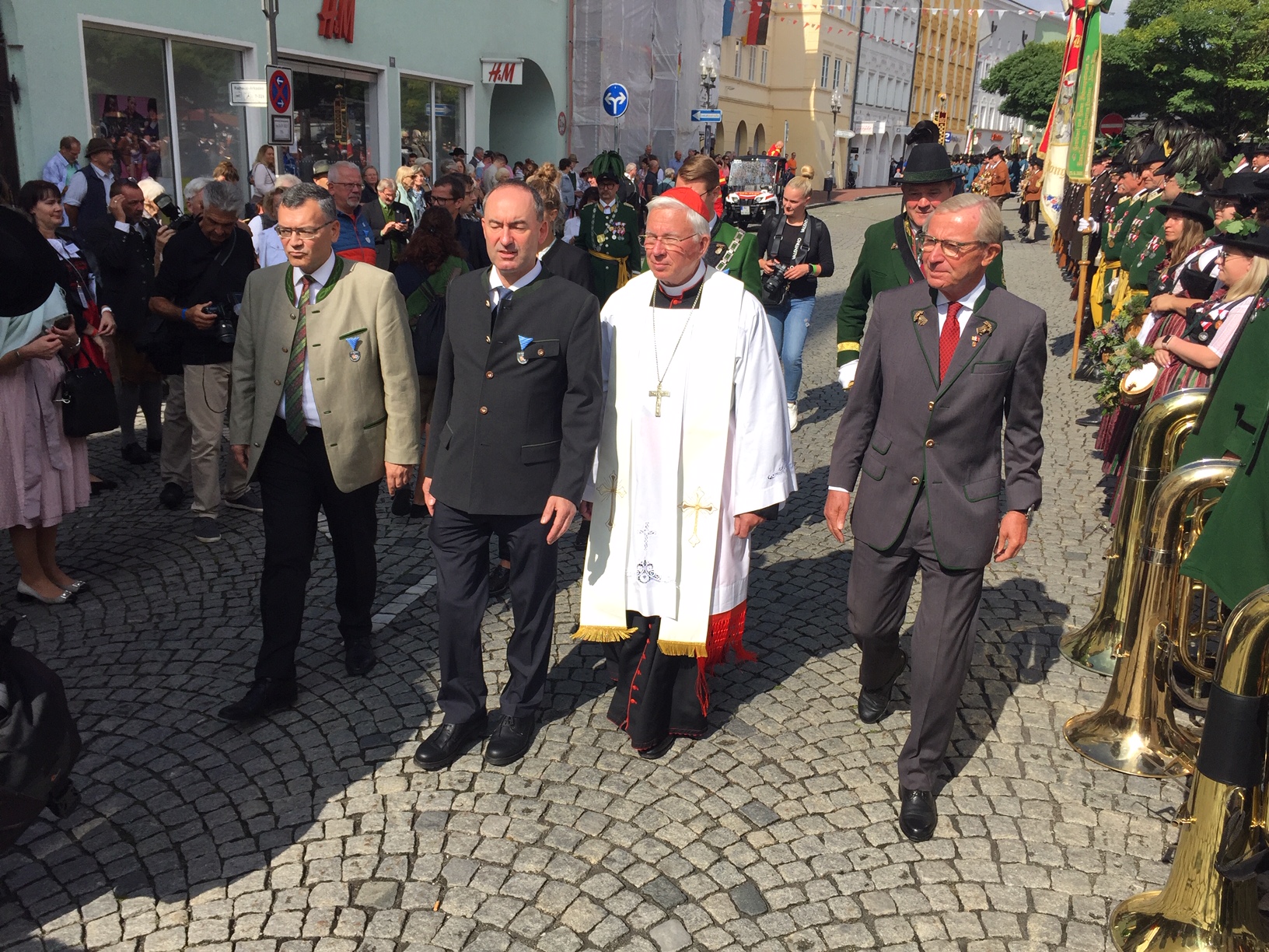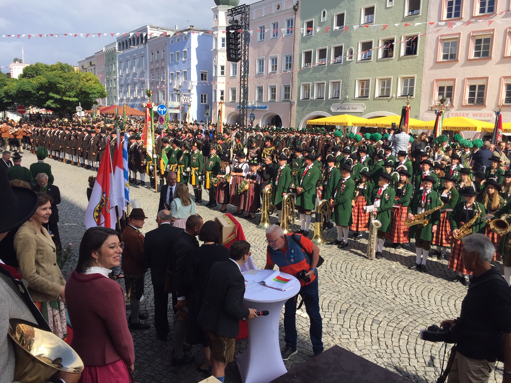 Insgesamt kamen rund 7000 Trachtler und Musiker nach Mühldorf. Unter ihnen auch Bayerns stellvertretender Ministerpräsident Hubert Aiwanger, der die Schützen als „Wahrer der Tradition“ bezeichnete.