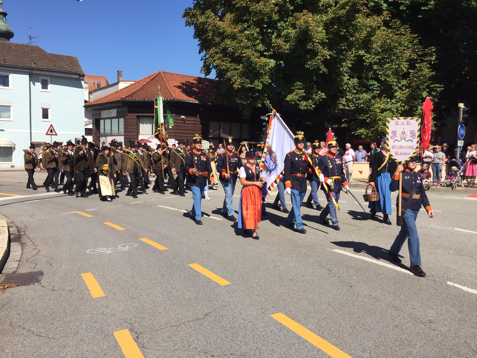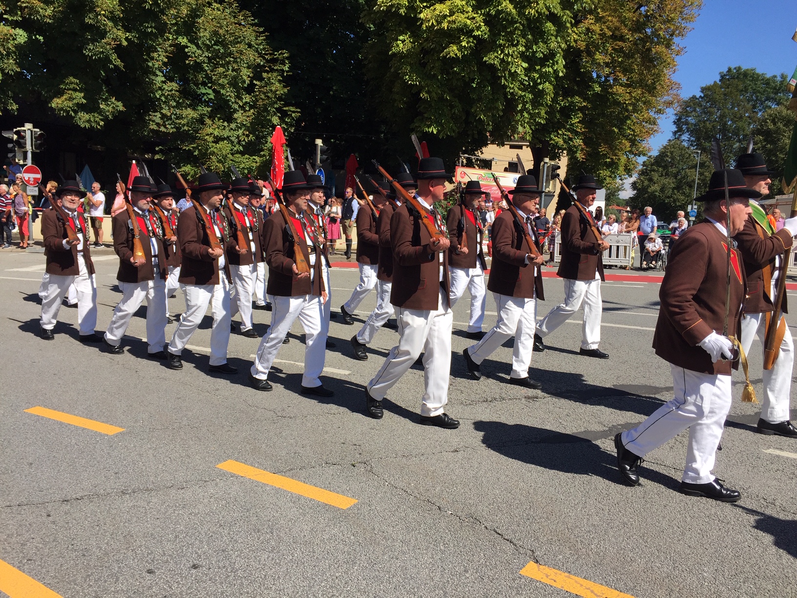 Den Auftakt bildete am Vormittag ein Lauffeuer vom Münchener Tor der Prangerschützen Ebenau (Flachgau). Unter dem Kommando des Salzburger Schützenobristen Josef Braunwieser folgte der Einmarsch mit der Landesfahne und das Abschreiten der Ehrenformation.