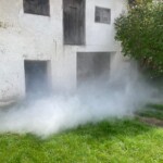 Bereits nach etwa fünf Minuten kamen beide Fahrzeuge am Einsatzort an, wo eine starke Rauchentwicklung in einem Nebengebäude festgestellt wurde, diese sollte durch den Aufbau einer B-Schlauchleitung und 2 C-Stahlrohren bekämpft werden. Um 13.43 Uhr geschah mitten im Aufbau des 2. C-Stahlrohres das für alle Unerwartete: Die aktive Mannschaft der Feuerwehr Schonstett wurde durch die Leitstelle Rosenheim zu einem echten Einsatz alarmiert. Um unserem Leitspruch „Gott zur Ehr, dem Nächsten zur Wehr“ gerecht zu werden, wurde der Übungseinsatz sofort abgebrochen, und beide Autos eilten zum Feuerwehrhaus, um dort die Jugendfeuerwehrler durch aktive Einsatzkräfte zu „tauschen“. Zum Glück kamen keine Personen zu Schaden, und der Einsatz konnte innerhalb einer Stunde abgearbeitet werden.