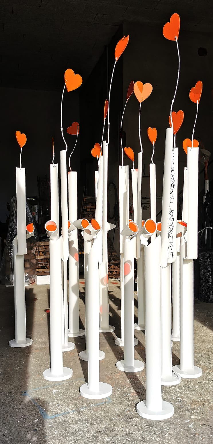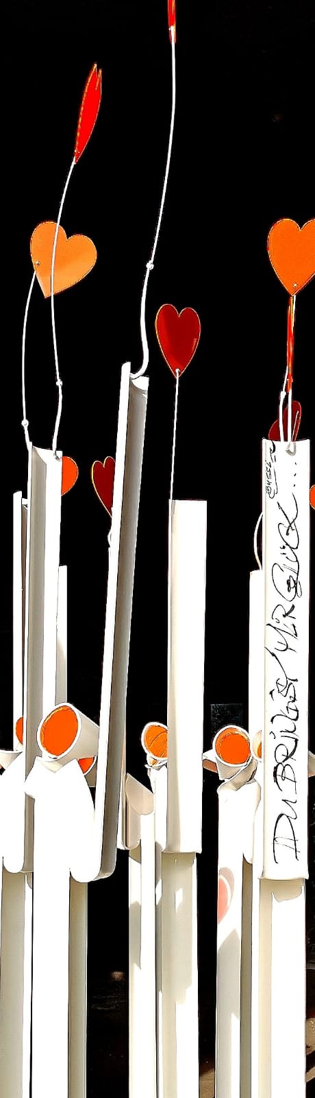 Zu sehen sind „Botschafter der Liebe in reinem Weiß – die aufsteigende, fluoreszierende rote Herzen und schöne Botschaften überbringen“. Die 15 Stelen, Höhe zweienhalb bis drei Meter, sind in der Cut-Out-Technik gearbeitet. Es besteht die Möglichkeit, vom Künstler persönliche Worte auf die weiße Fläche schreiben zu lassen – eine besondere Variante für die Zustellung einer Liebesbotschaft.